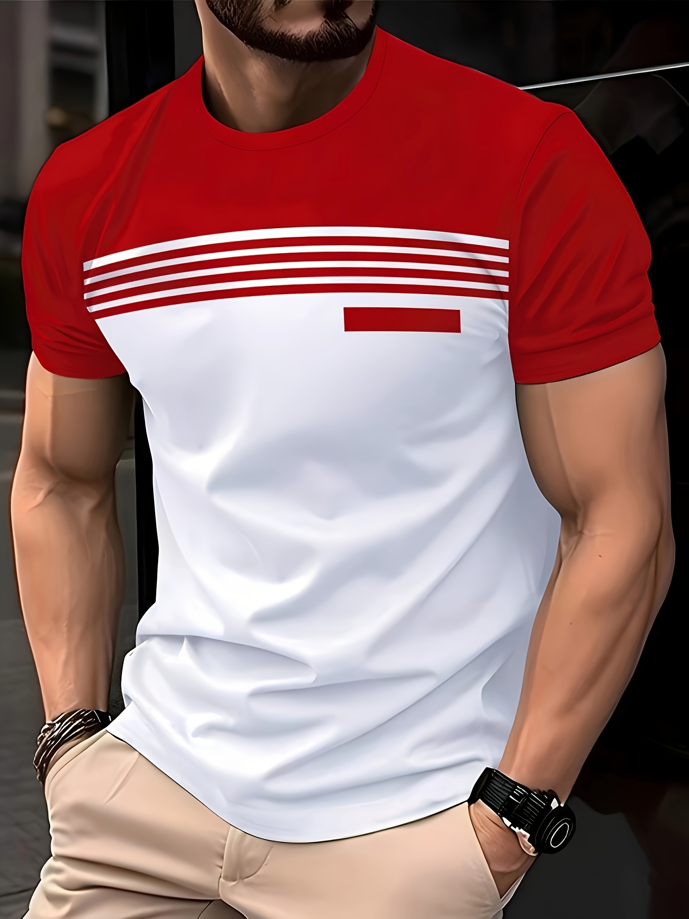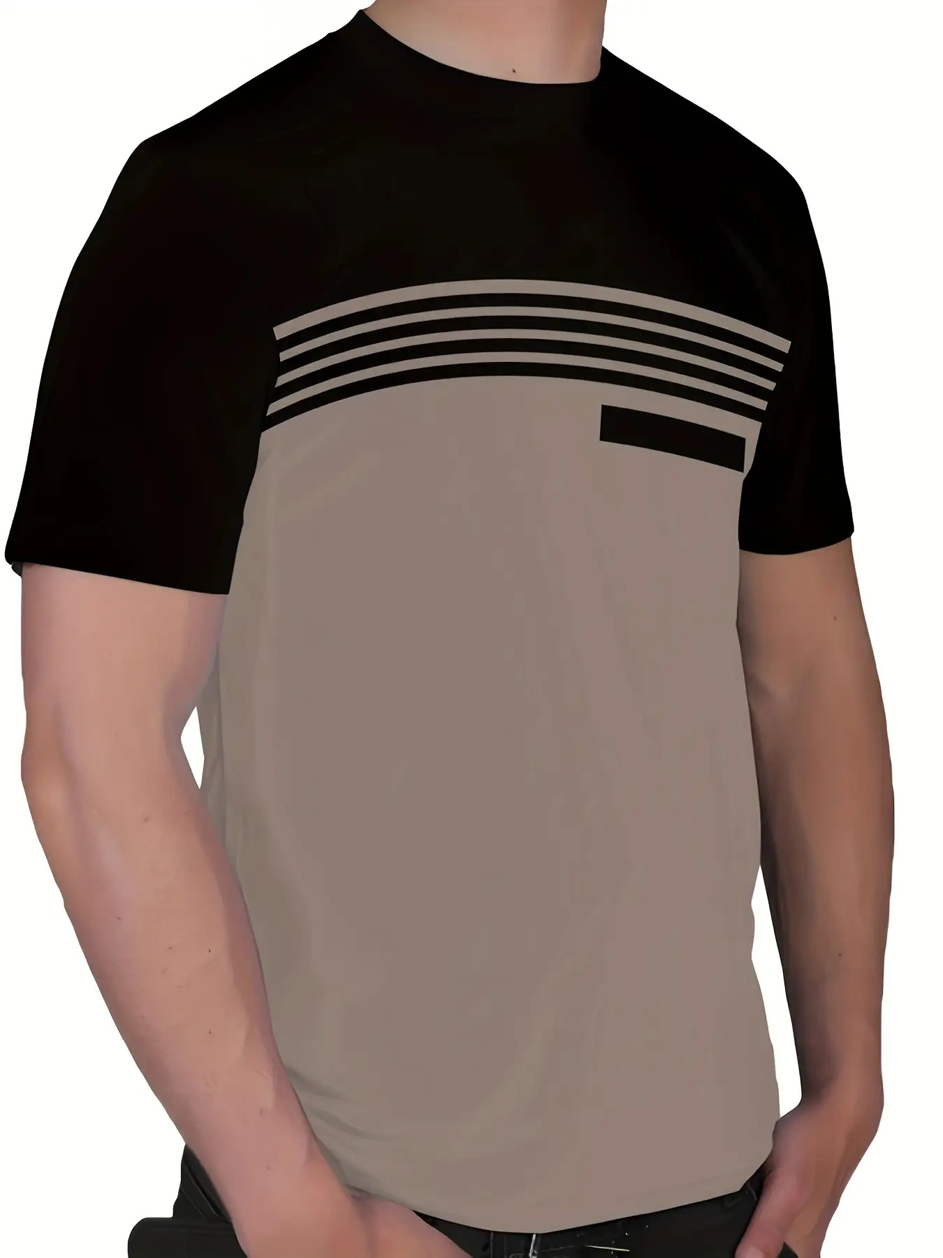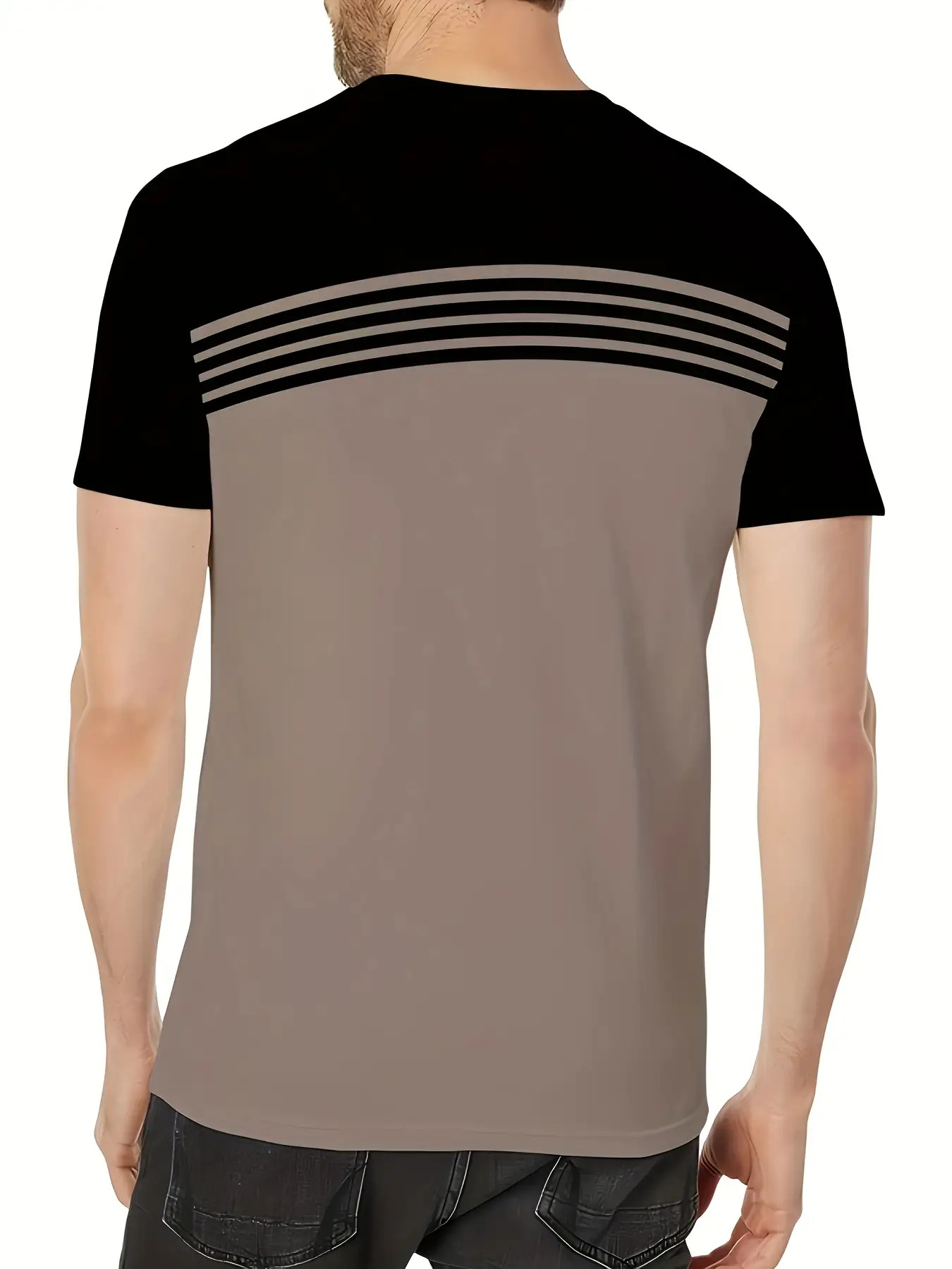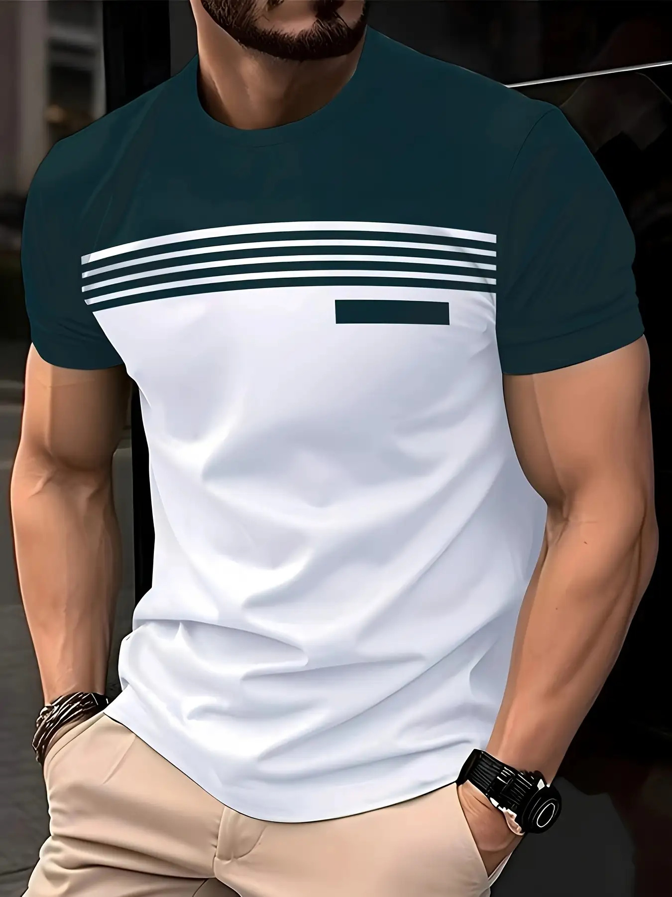 3pcs Men'S Casual Crew Neck Short Sleeve T-Shirts- Light Gray with White Horizontal Stripes, Regular Fit, Slight Stretch Fabric, Stylish Black Watch Accessories, Casual Attire|Striped Tee|Stretchy Fabric, Everyday Outfit, Versatile Clothing, Minimalist Design, Modern Casual, Durable Construction, Breathable Fabric, Basic Tee, Striped Shirt, Plus Size, Men T Shirt High Quality, Men Plus Size Clothing, Big And Tall Men Clothing, Men Big And Tall Clothing, Big And Tall Graphic Tee, Plus