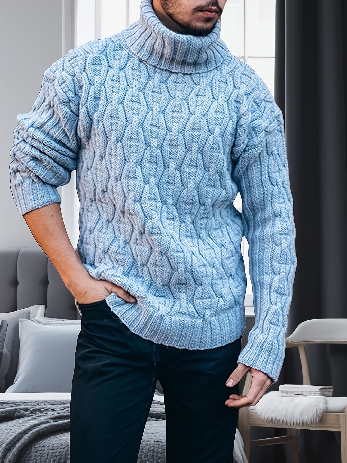 Men's Plus Size Winter Warm Sweater - Oversized Loose Fit High Collar Pullover, Solid Color Casual Winterwear Suitable for Cold Weather, Hand Washable Thick Sweaters, PLUS SIZE