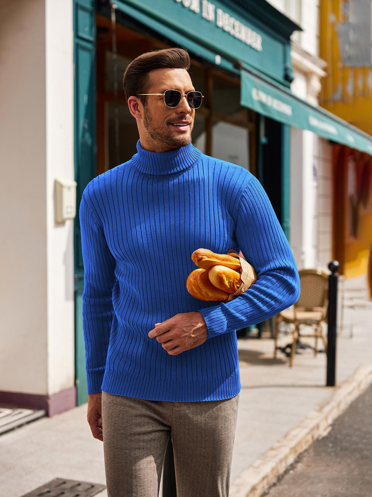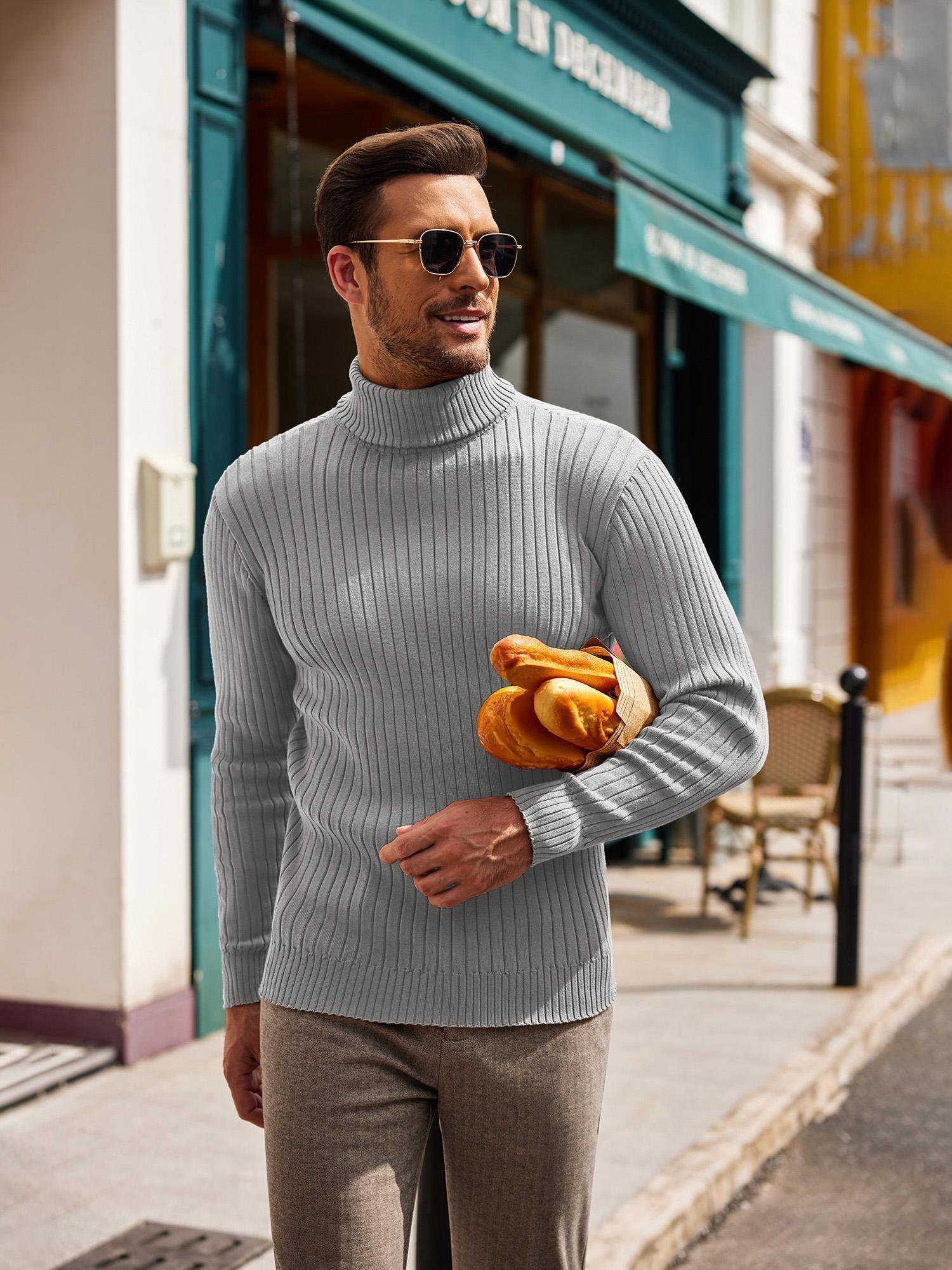 Men's Slim Fit Ribbed Turtleneck Sweater - Lightweight Knit Pullover for Fall/Winter, Casual Long Sleeve, Machine Washable, Solid Color, Comfortable Casual Attire, PLUS SIZE