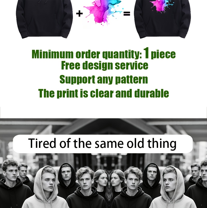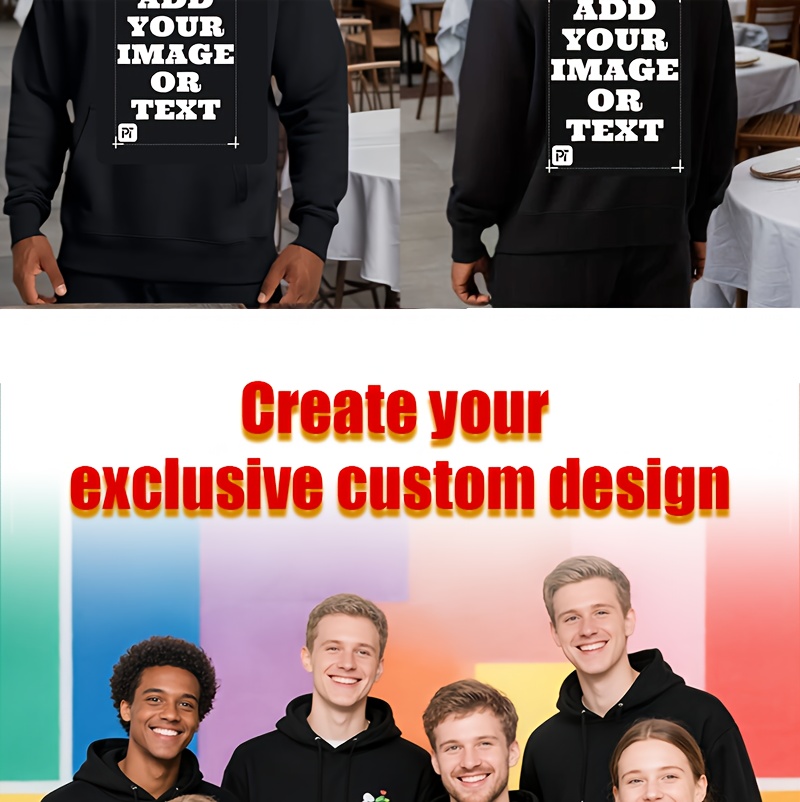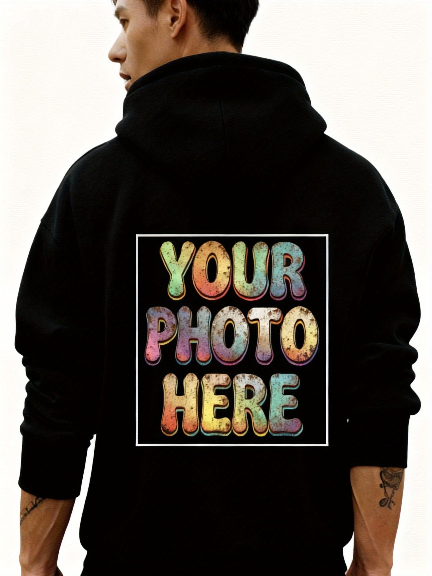 Customizable Men'S Hoodie - Personalized Front & Back Printing with Your Photo/Text/Logo - Soft Pullover Sweatshirt, Loose Fit Hooded Sweatshirt with Pockets, Durable Fabric for Corporate Branding, Birthday Gifts & Streetwear - Custom Graphic Design