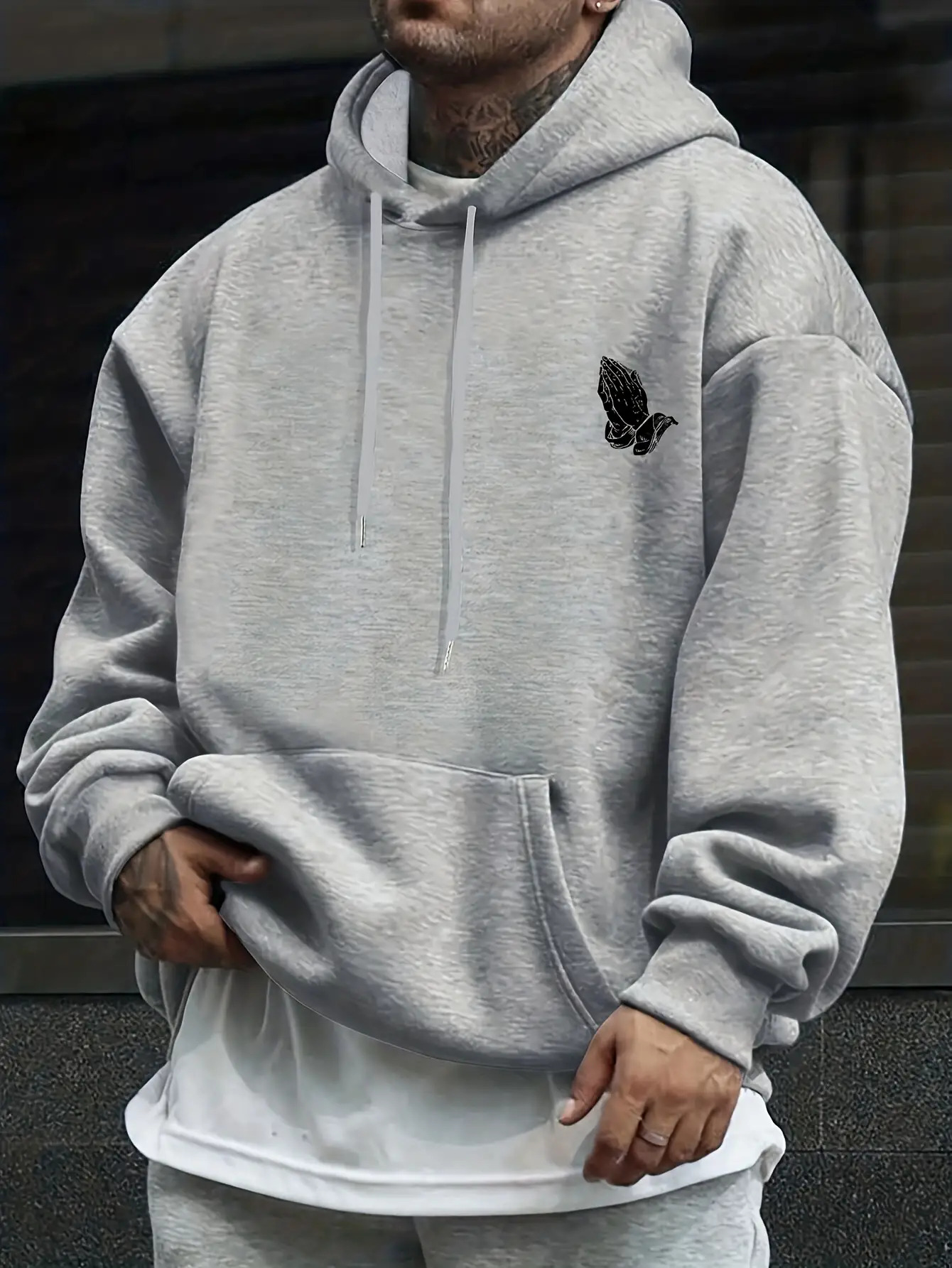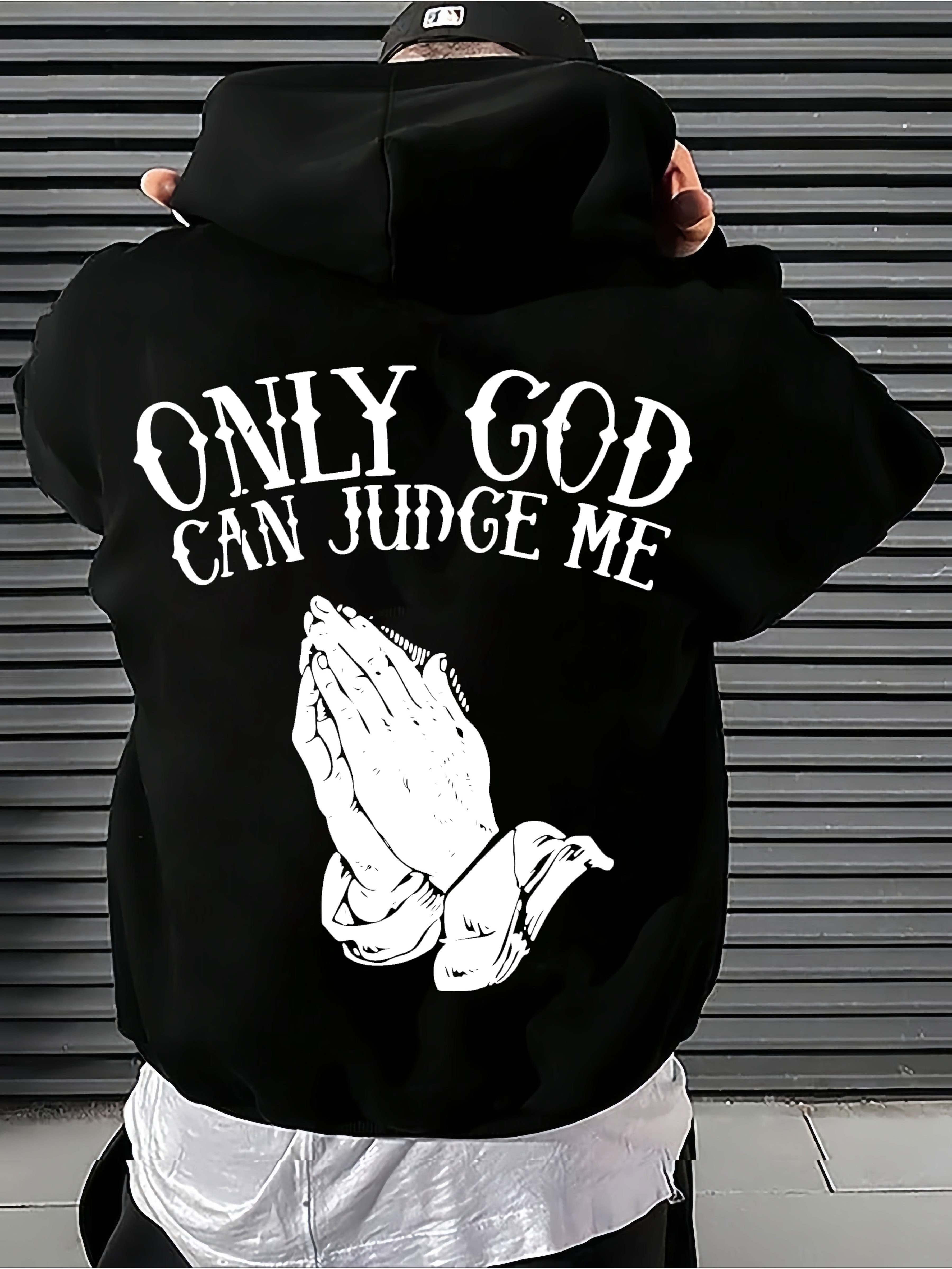 Men'S Christian Faith Hooded Sweatshirt with "Only God Can Judge Me" Back Print & Prayer Hands Design - Black with White Lettering, Loose Fit Casual Pullover, Long Sleeve Religious Apparel, Front Pocket, Machine Washable, Comfortable Hooded Sweater