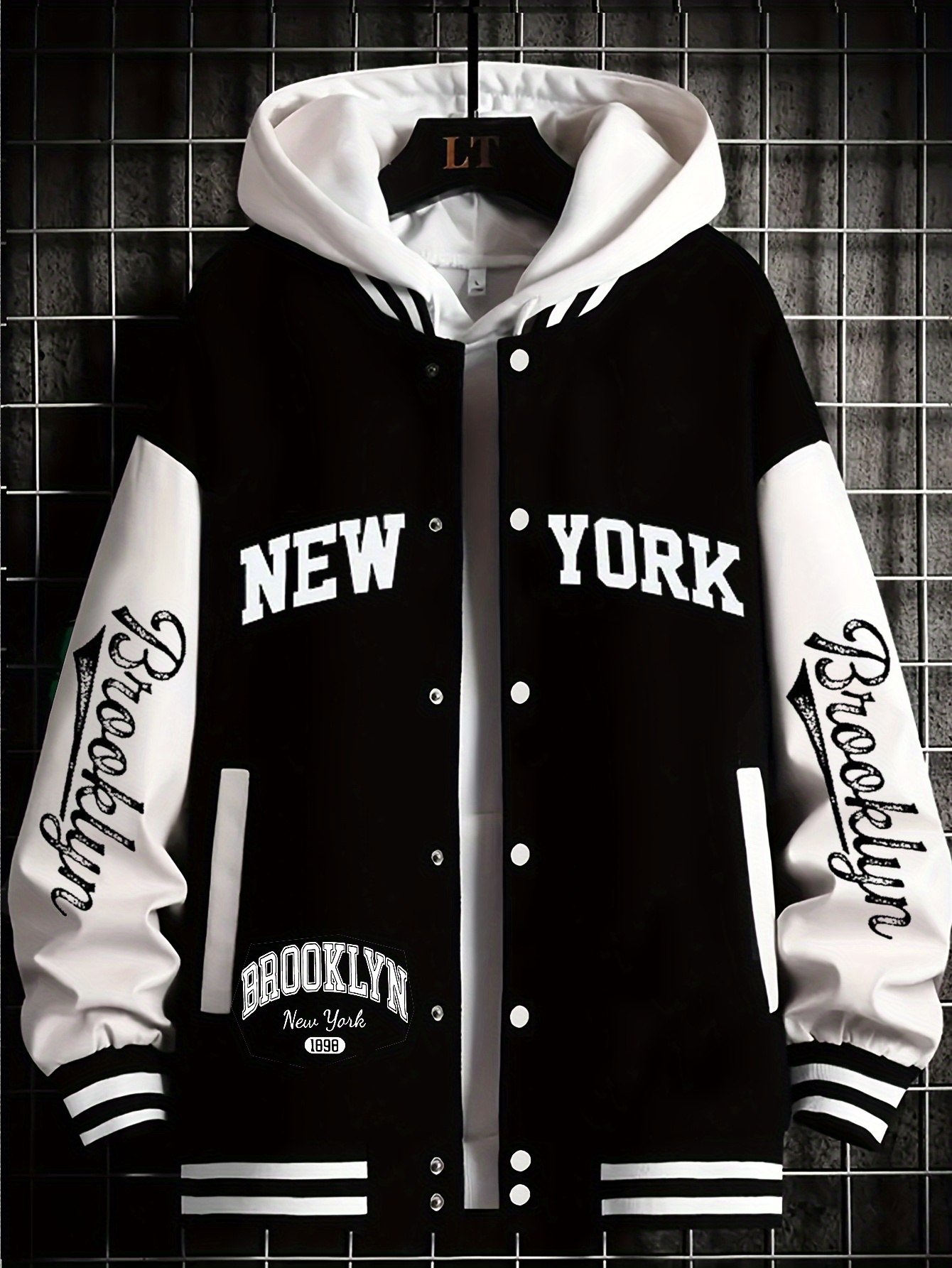 Men's Large Plus Size New York Logo Baseball Uniform Jacket - Winter Outdoor Casual Snap Button Closure Coat with Letter 'NY' Emblem, Machine Washable Polyester, Christmas Gift for Fans, PLUS SIZE