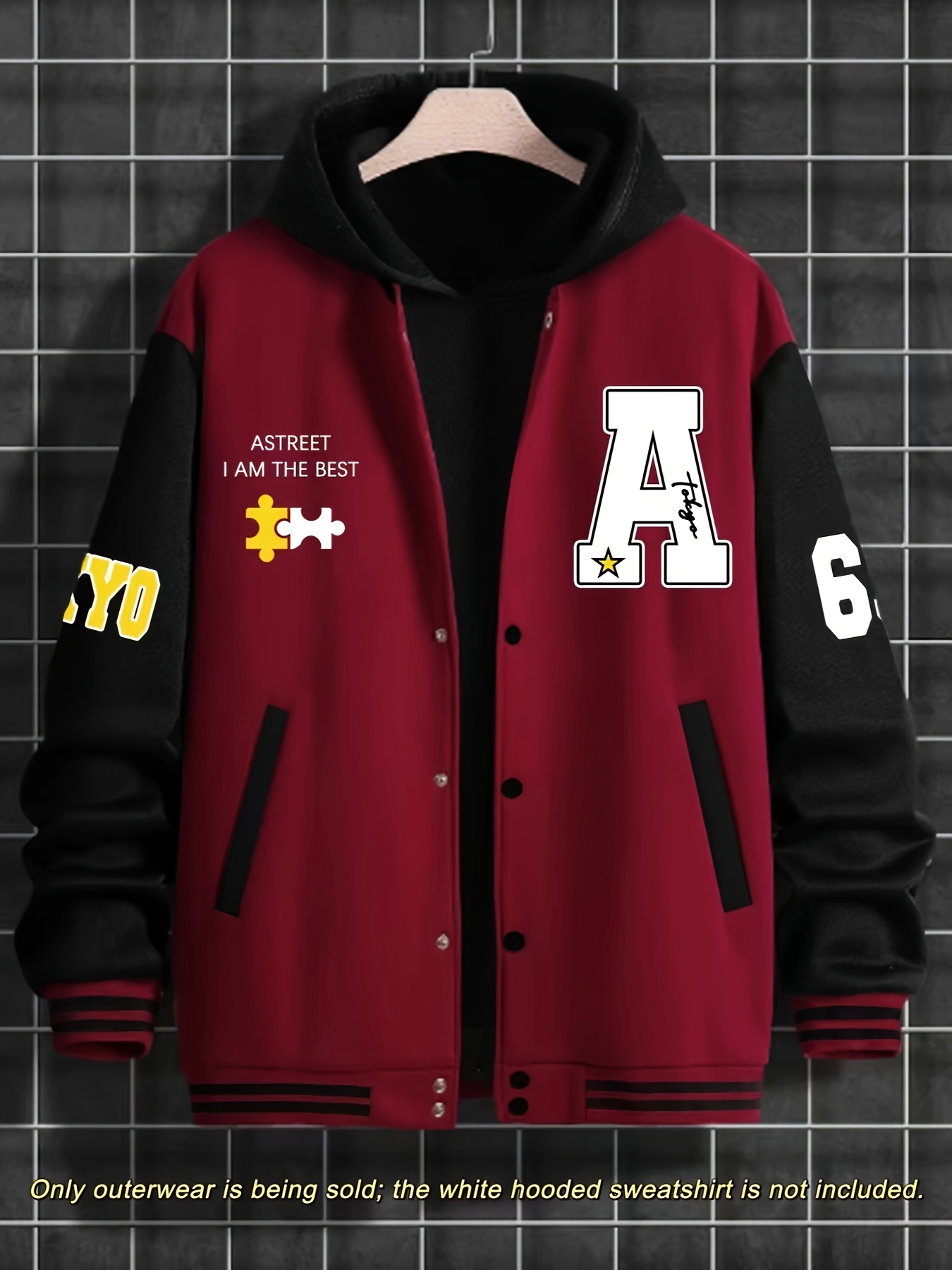 Men's Large Size Baseball Jacket A-69 Letter Print (A for Alpha, 69 for Number 6 & 9) - Plus Size Outerwear with Snap Closure & Pockets, Machine-Washable Polyester Spring/Fall Winter Casual Wear - Christmas Gift for Big & Tall Men, PLUS SIZE