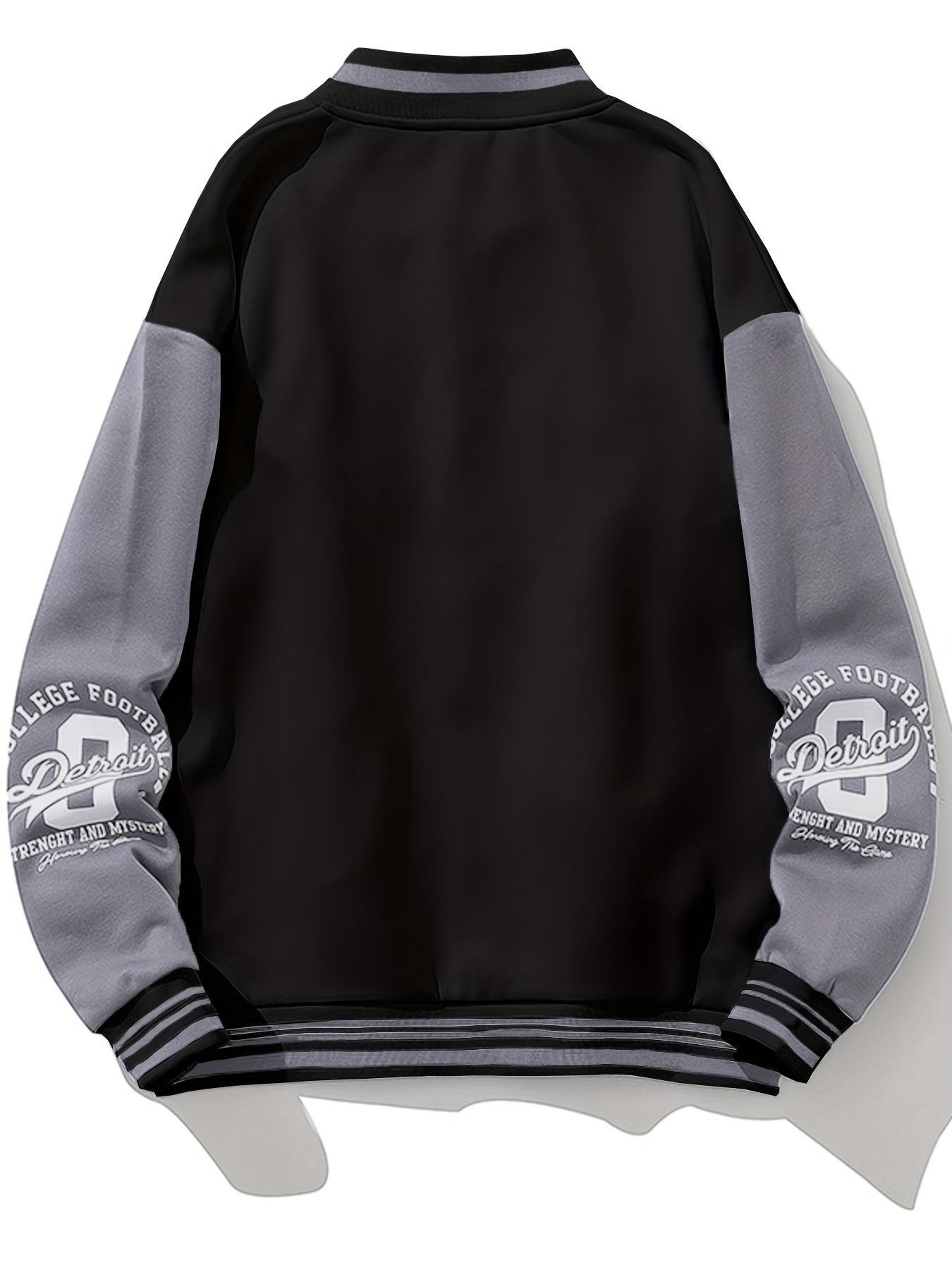 Men'S Large Size Casual Baseball Jacket with Letter Print & Team Spirit Design - Warm Outerwear, Snap Closure & Functional Pockets, Spring/Fall Outdoor Sports Apparel, Christmas Gift for Men (No Hat Included) - Trendy Casual Style for Casual Attire