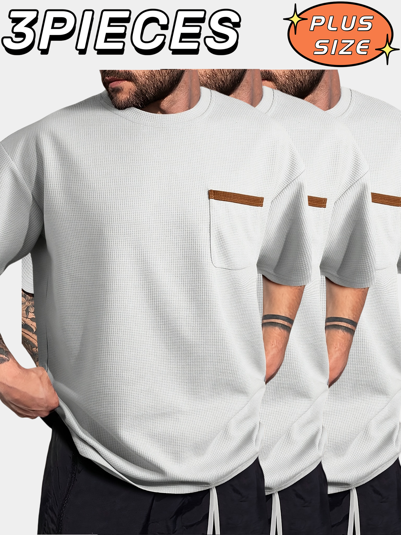 3pcs Men'S Plus Size Casual Short Sleeve T-Shirt Set, Essential Basic Tee - Breathable, Soft & Comfortable Waffle Fabric, Solid Color, Round Neck, Perfect for Casual Attire, PLUS SIZE, Men'S Set On, Men'S White Beach Set, Men'S Training Suit Set, Men'S Beach Set For Large Sizes