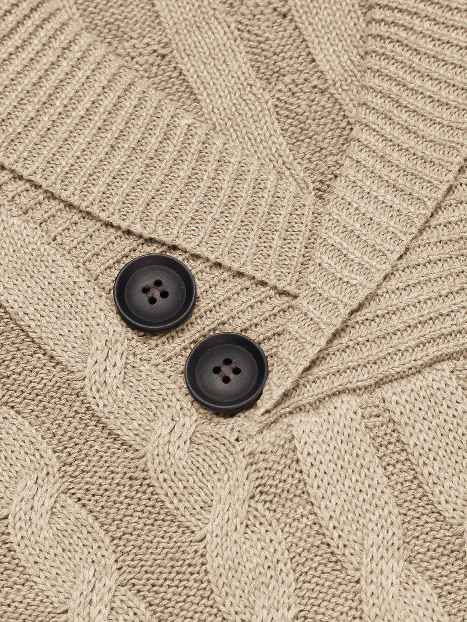 Men'S Shawl Collar Pullover Sweater Slim Fit Casual Button Cable Knit Sweaters, Plus Size