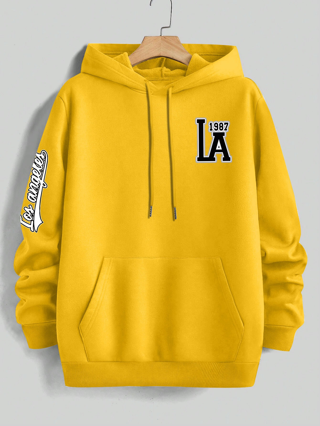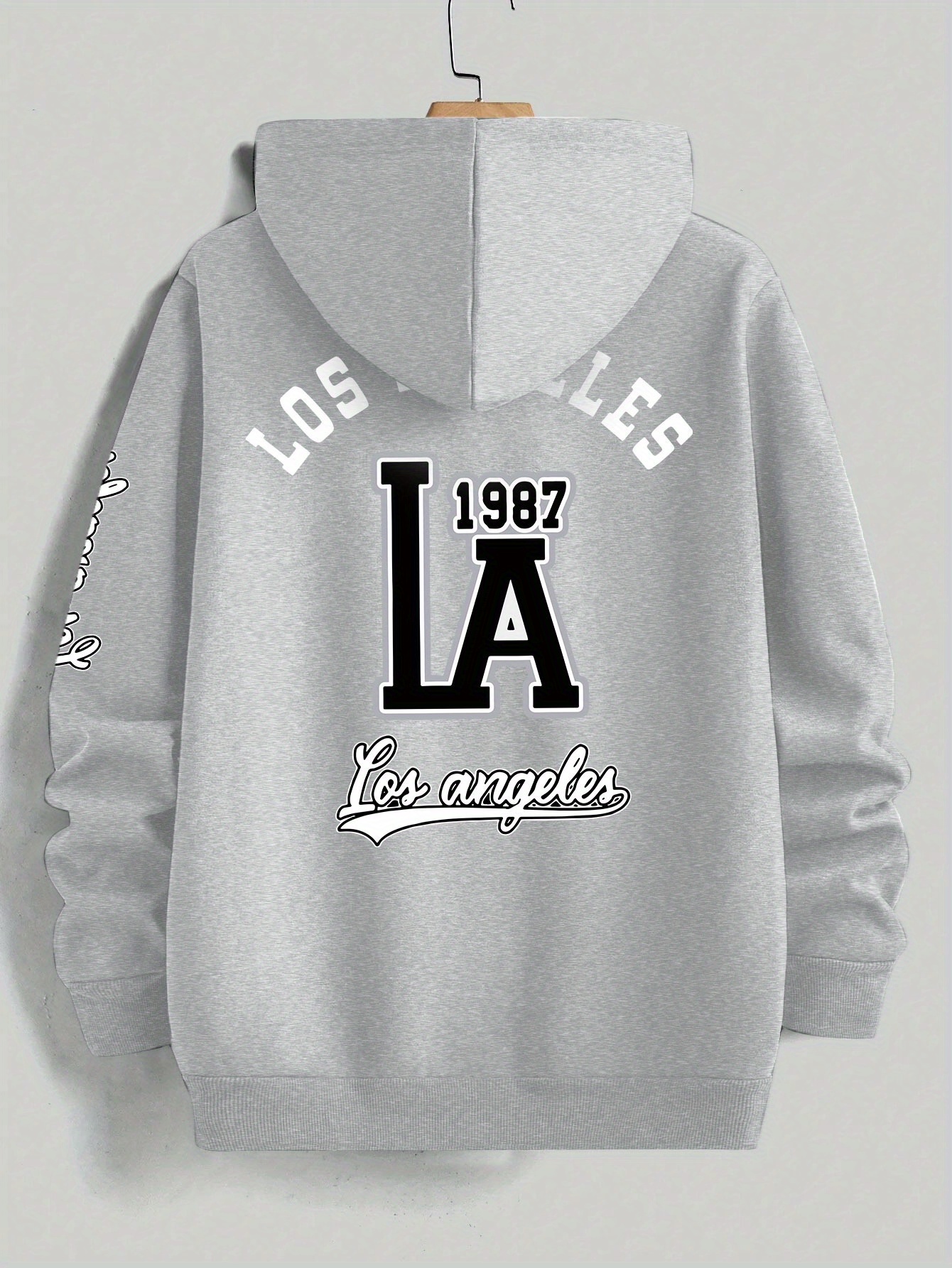 Men's Casual Hooded Sweater with Logo & 1985 Print - Oversized Brown Hoodie, Loose Fit Long Sleeve Pullover, Vintage Lettering, Machine Washable for Spring/Fall Layering (No Transparency), PLUS SIZE