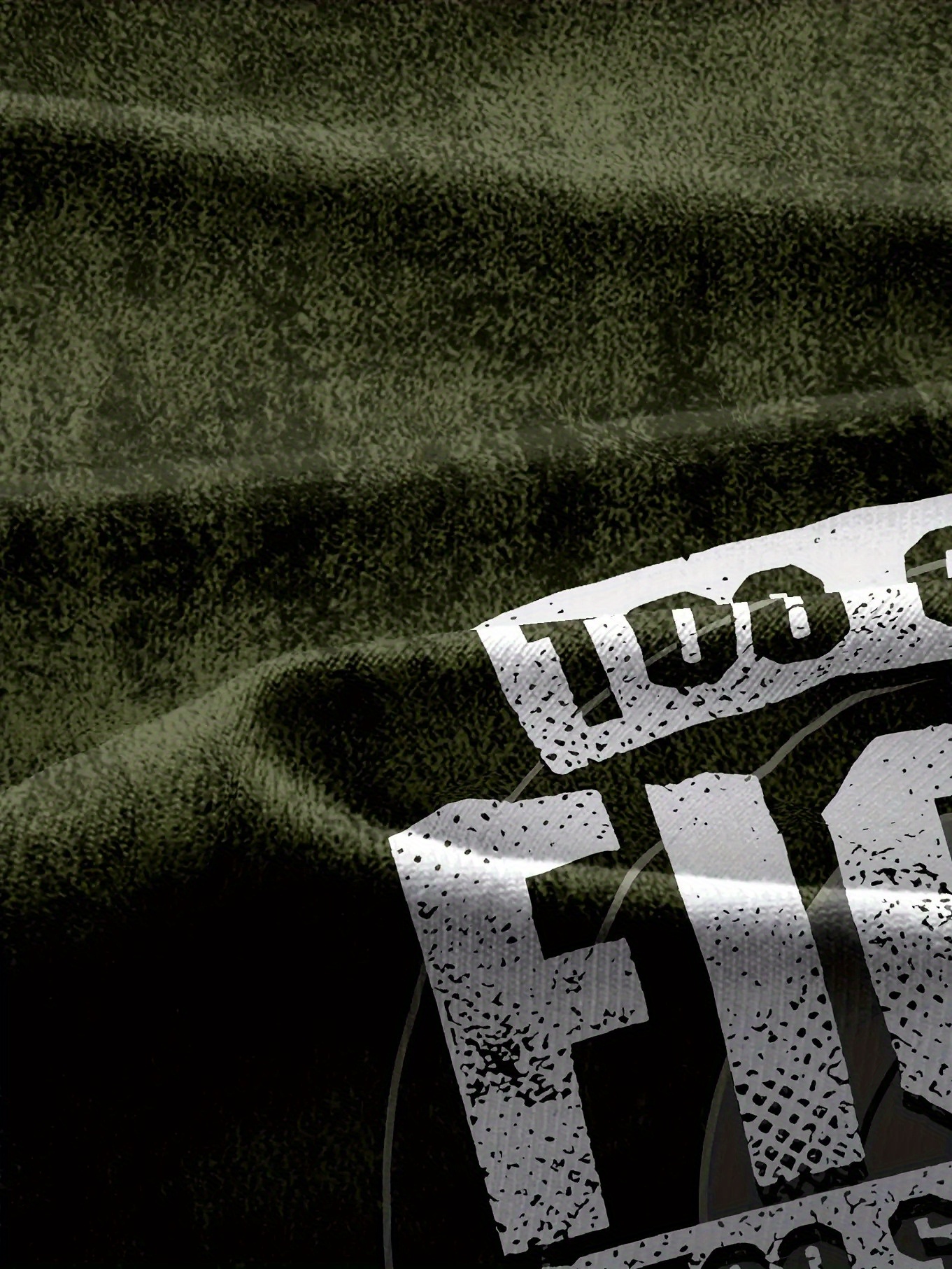 Men's Bold Graphic T-Shirt - Funny Shooting Sports Saying Back Print - Dark Olive Green Crew Neck Tee - Stretch Fabric Casual Shirt for Everyday & Weekend Outfits - Machine Washable Adult Sizes, Relaxed Style, Statement Design, Comfortable Fit, Short Sleeve Top, Humor Lovers, PLUS SIZE