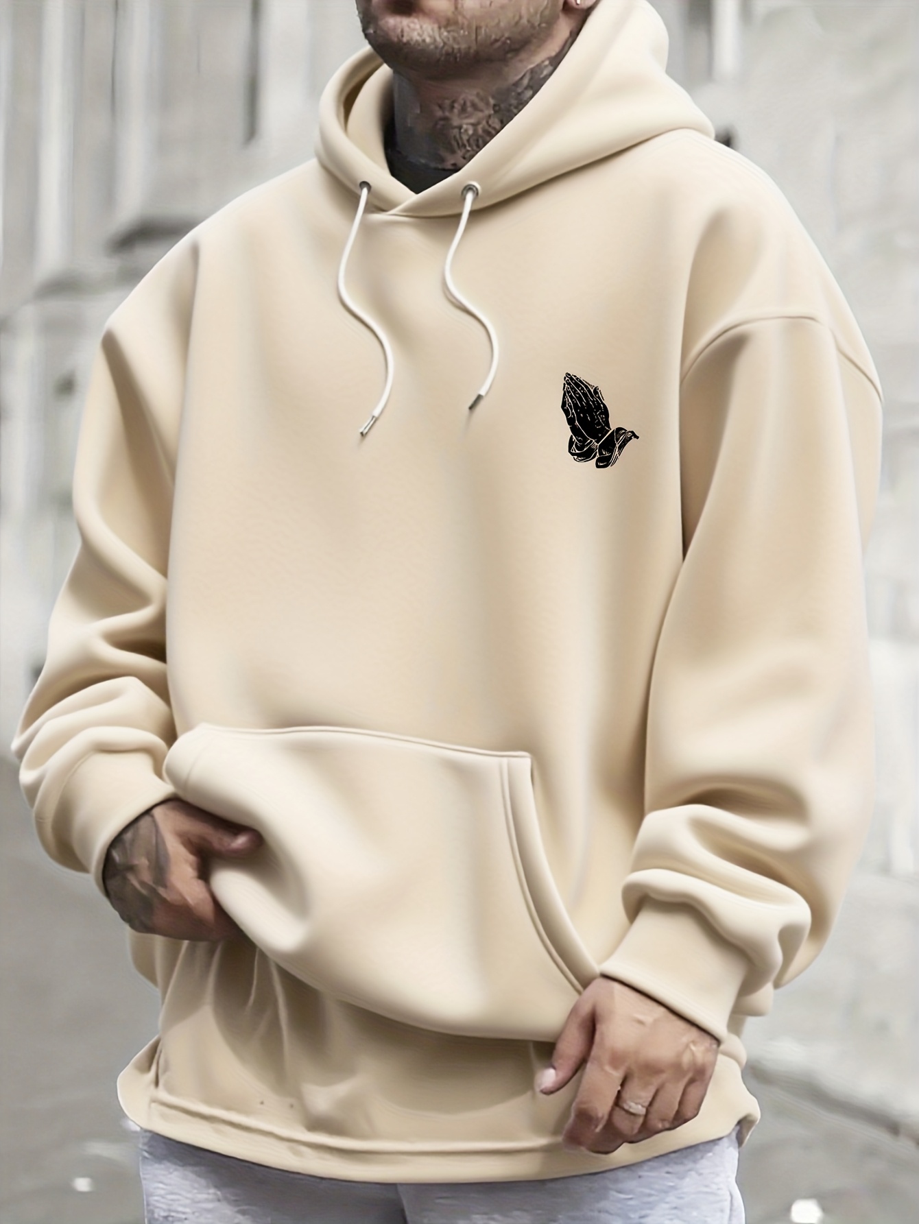 Men'S Christian Faith Hooded Sweatshirt with "Only God Can Judge Me" Back Print & Prayer Hands Design - Black with White Lettering, Loose Fit Casual Pullover, Long Sleeve Religious Apparel, Front Pocket, Machine Washable, Comfortable Hooded Sweater