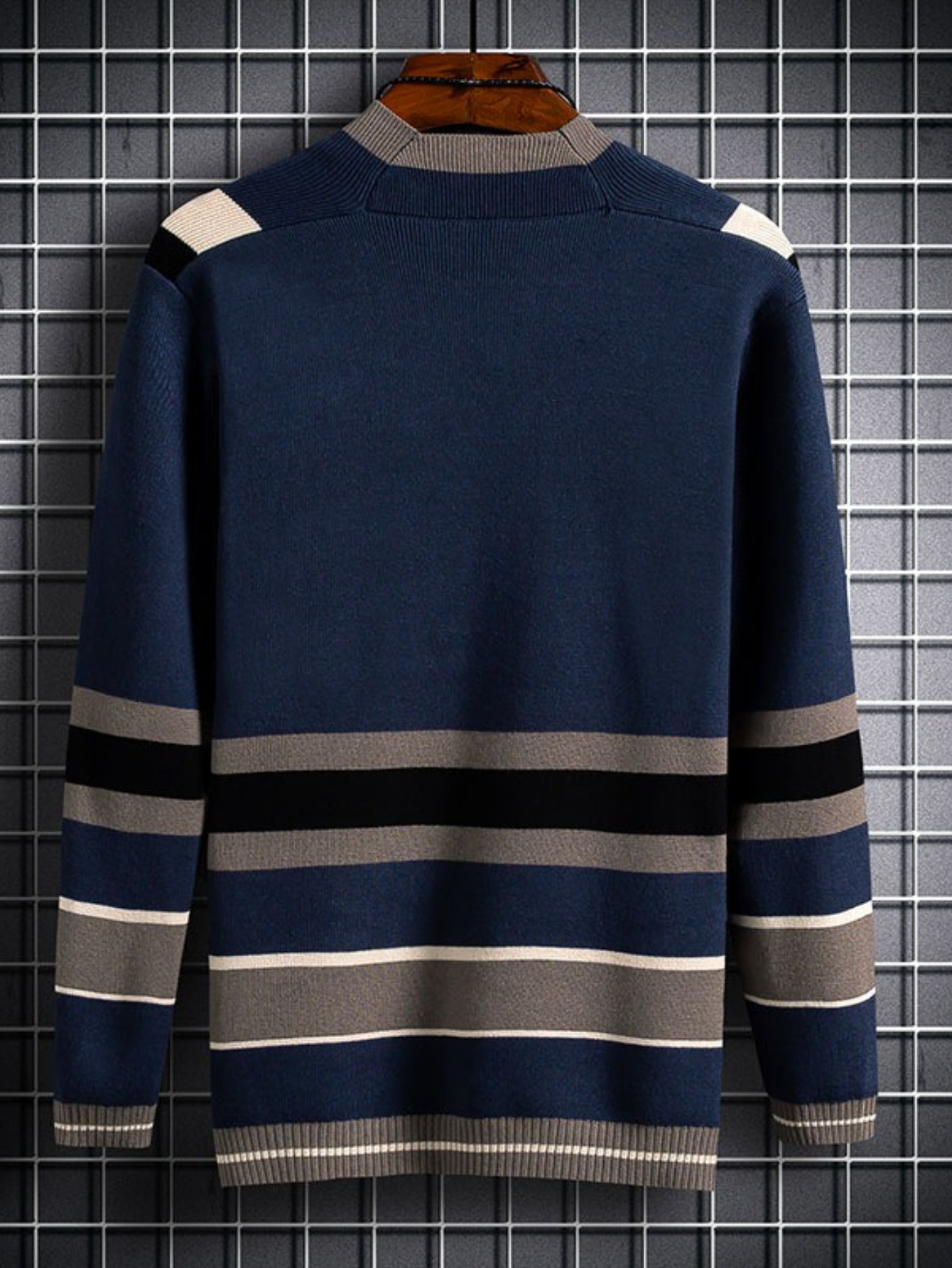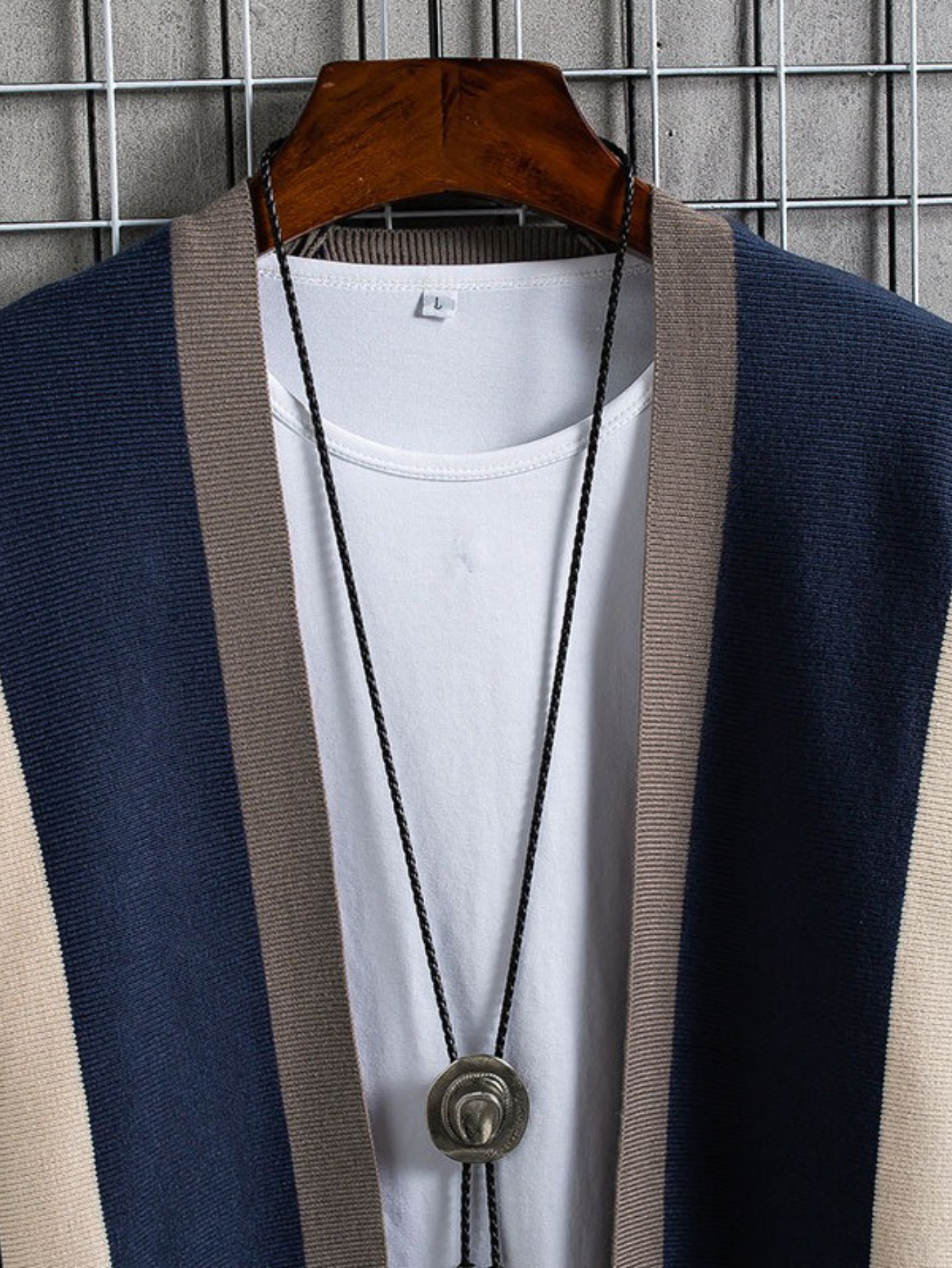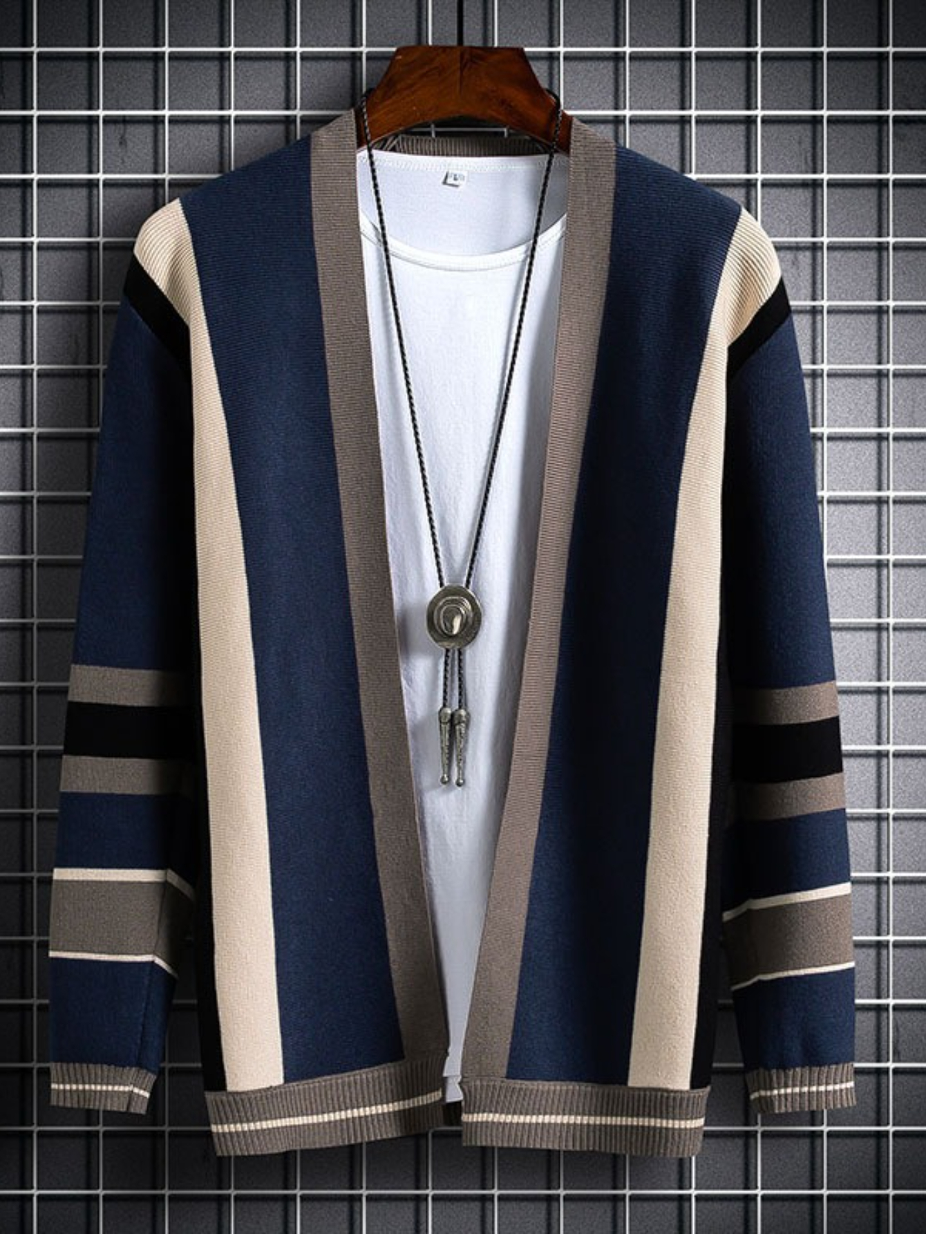 Men's Color-Block Cardigan Jacket - Open-Front Button Closure, Soft Winter Layering Coat (Size Up for proper fit) | Machine Washable Swebs for Fall & Winter | Casual, Office, Streetwear | Color-Block/Striped/Solid Options, PLUS SIZE