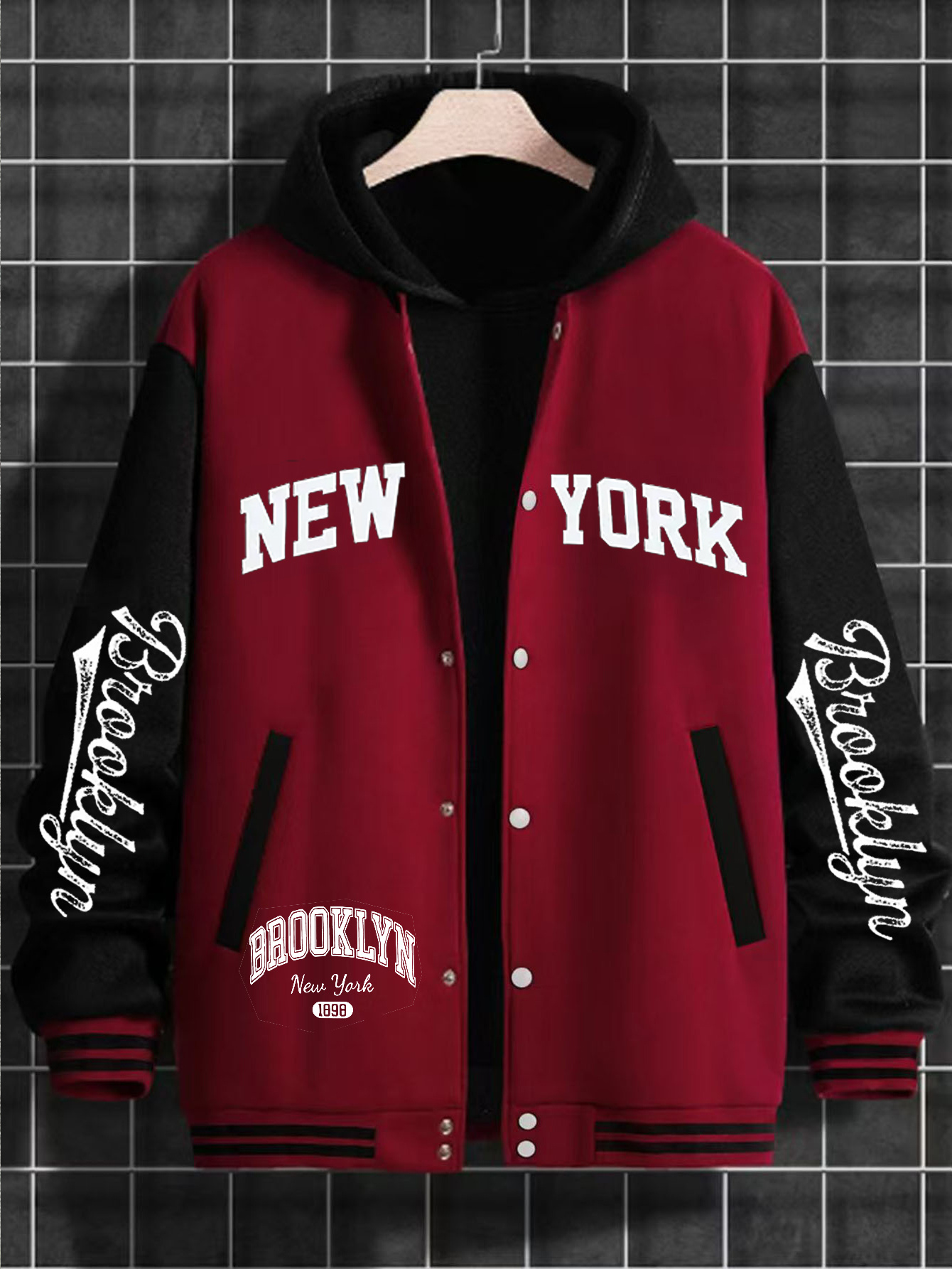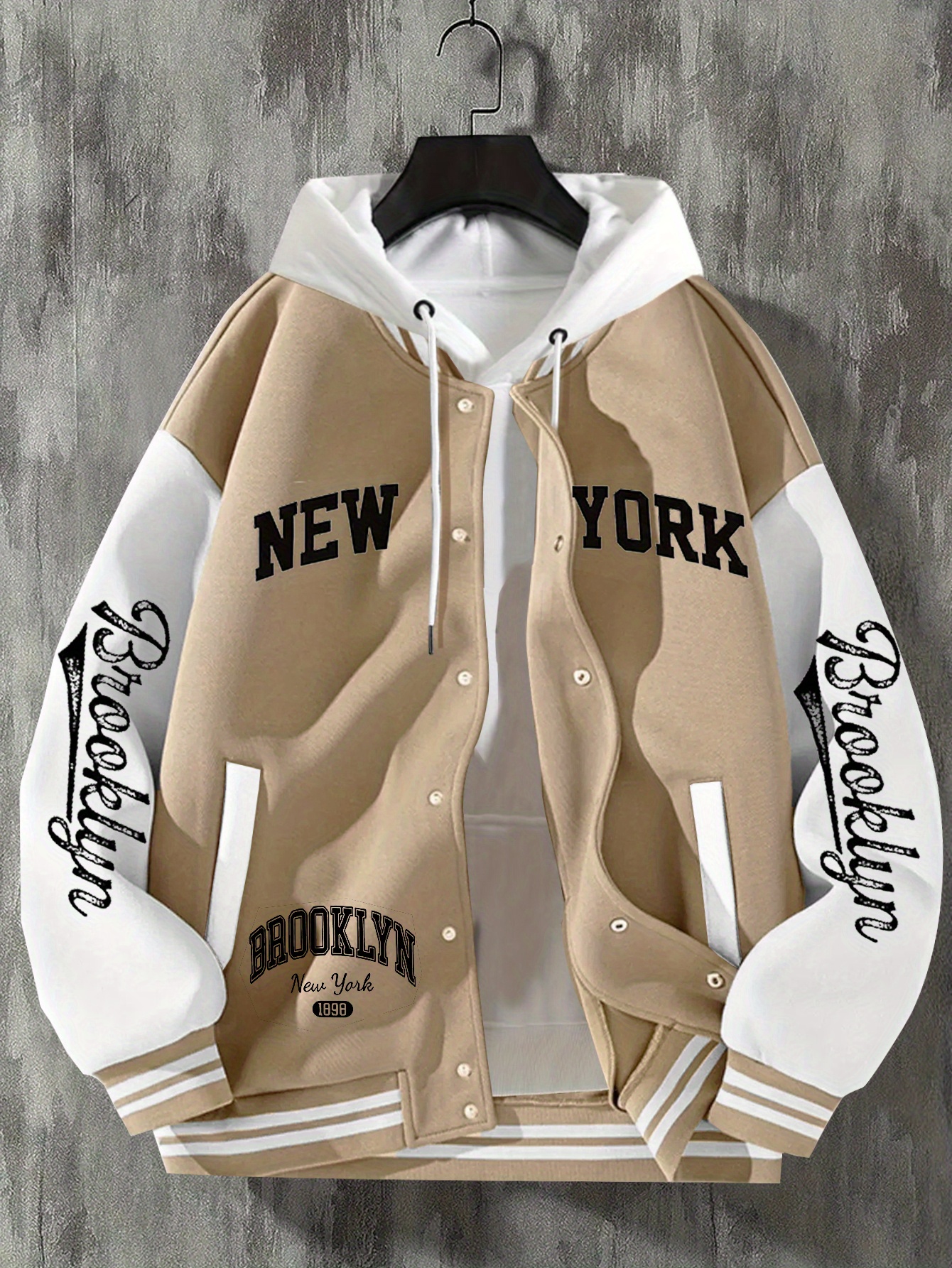 Men's Large Plus Size New York Logo Baseball Uniform Jacket - Winter Outdoor Casual Snap Button Closure Coat with Letter 'NY' Emblem, Machine Washable Polyester, Christmas Gift for Fans, PLUS SIZE