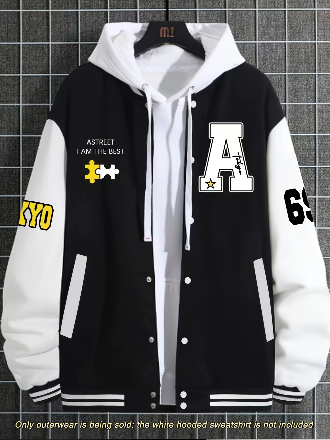 Men's Large Size Baseball Jacket A-69 Letter Print (A for Alpha, 69 for Number 6 & 9) - Plus Size Outerwear with Snap Closure & Pockets, Machine-Washable Polyester Spring/Fall Winter Casual Wear - Christmas Gift for Big & Tall Men, PLUS SIZE