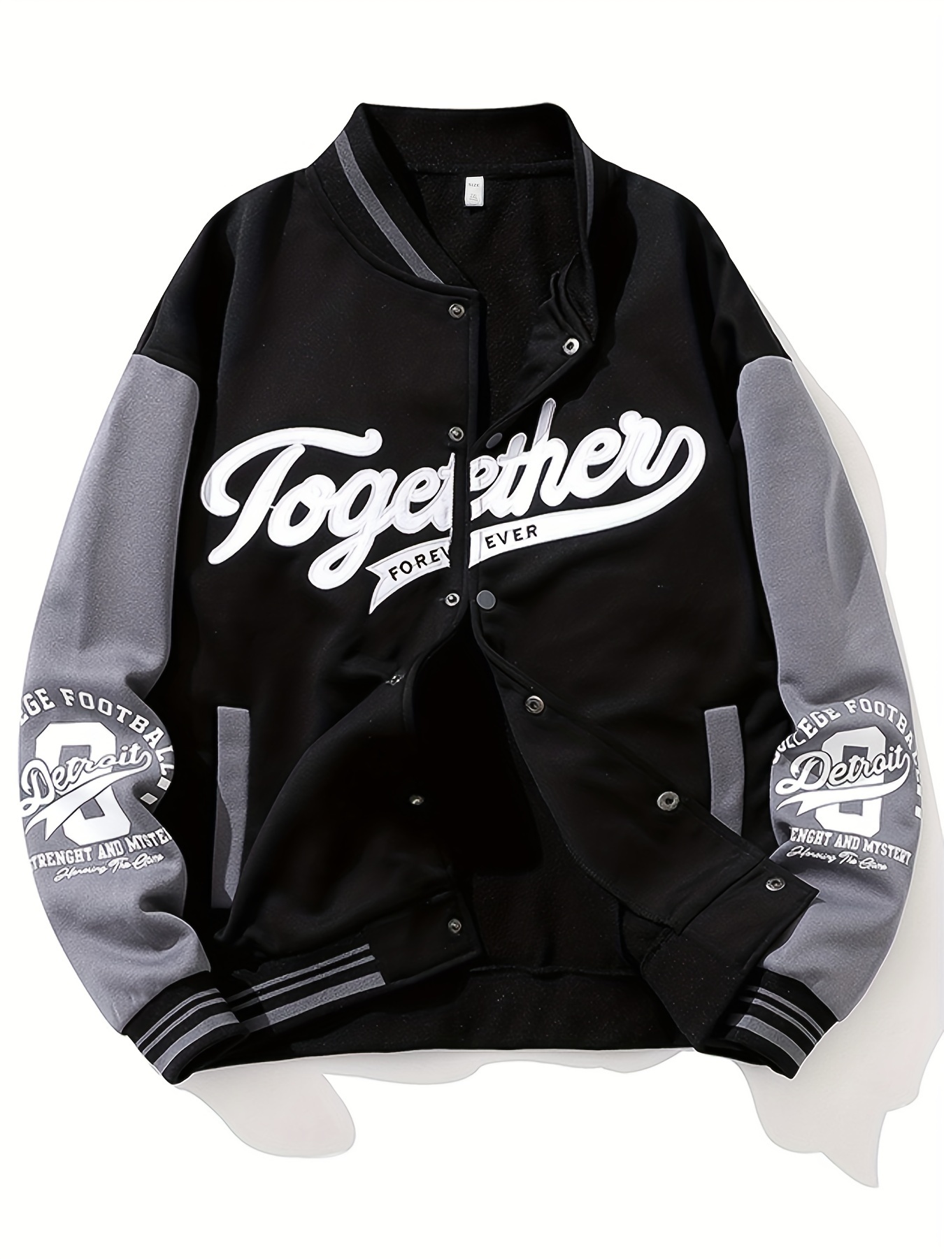 Men'S Large Size Casual Baseball Jacket with Letter Print & Team Spirit Design - Warm Outerwear, Snap Closure & Functional Pockets, Spring/Fall Outdoor Sports Apparel, Christmas Gift for Men (No Hat Included) - Trendy Casual Style for Casual Attire