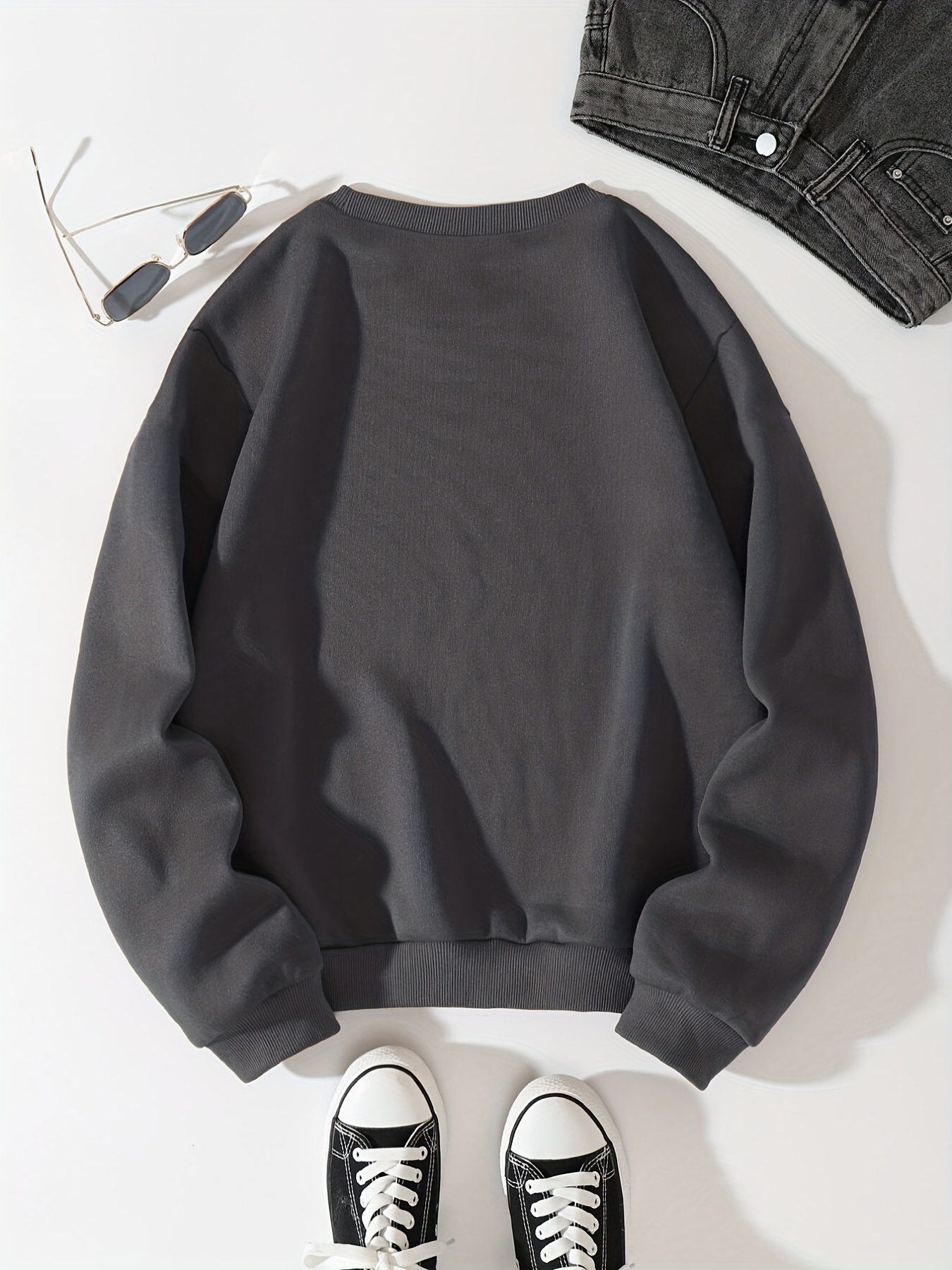 Men'S Loose Fit Sweatshirt - White Pullover with Minimalist Graphic, Soft Polyester Long Sleeve Shirt for Everyday & Formal Wear, Machine Washable Winter Sweater for Men, Sweater, Casual Wear, Korean Fashion, Durable Construction, Printed Top, Streetwear Lovers, PLUS SIZE