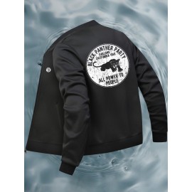 Men'S Large Size Casual Baseball Jacket with Letter Print & Team Spirit Design - Warm Outerwear, Snap Closure & Functional Pockets, Spring/Fall Outdoor Sports Apparel, Christmas Gift for Men (No Hat Included) - Trendy Casual Style for Casual Attire