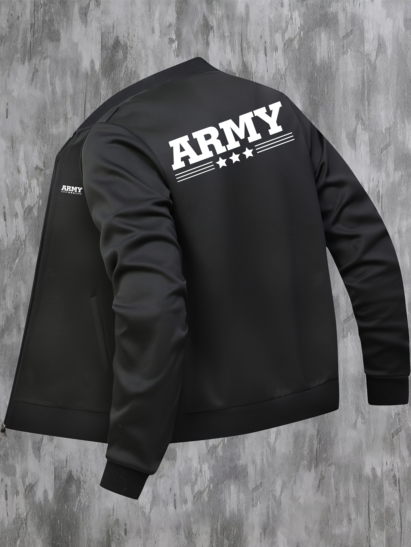 Men'S Plus Size Casual Army Print Varsity Jacket with Pockets, Baseball Collar, Zipper Closure, Knit Polyester Fabric, Slight Stretch, Regular Fit - 95% Polyester, 5% Elastane
