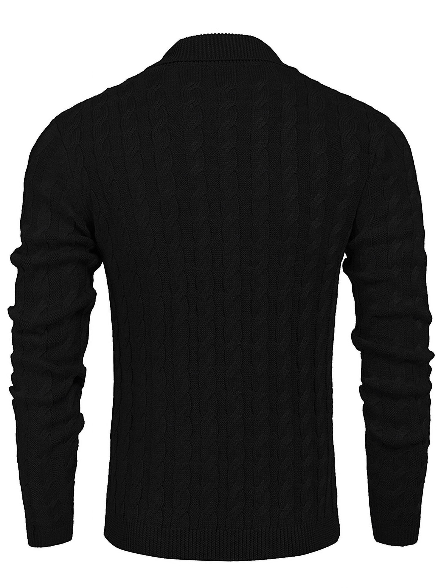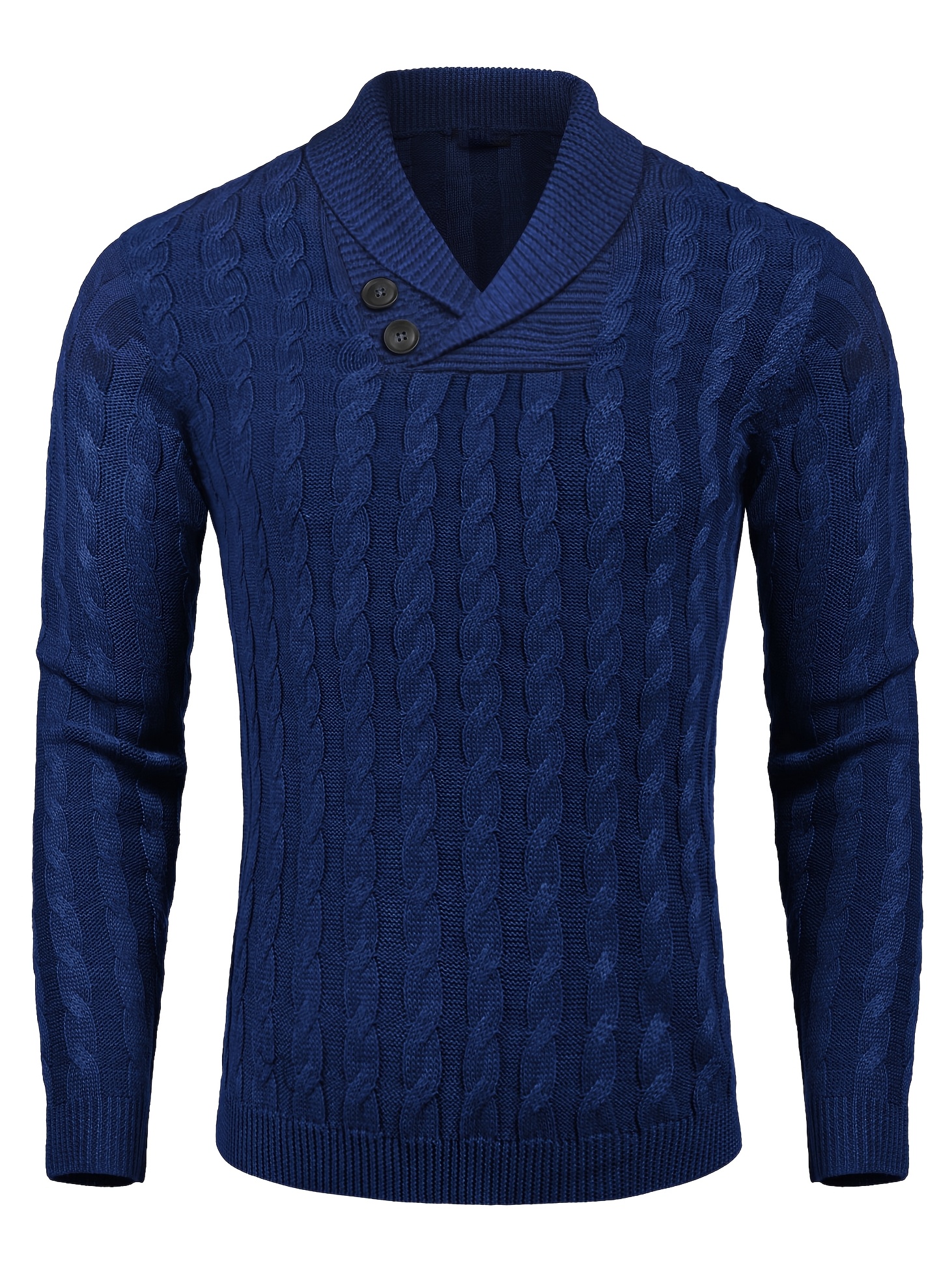 Men'S Shawl Collar Pullover Sweater Slim Fit Casual Button Cable Knit Sweaters, Plus Size