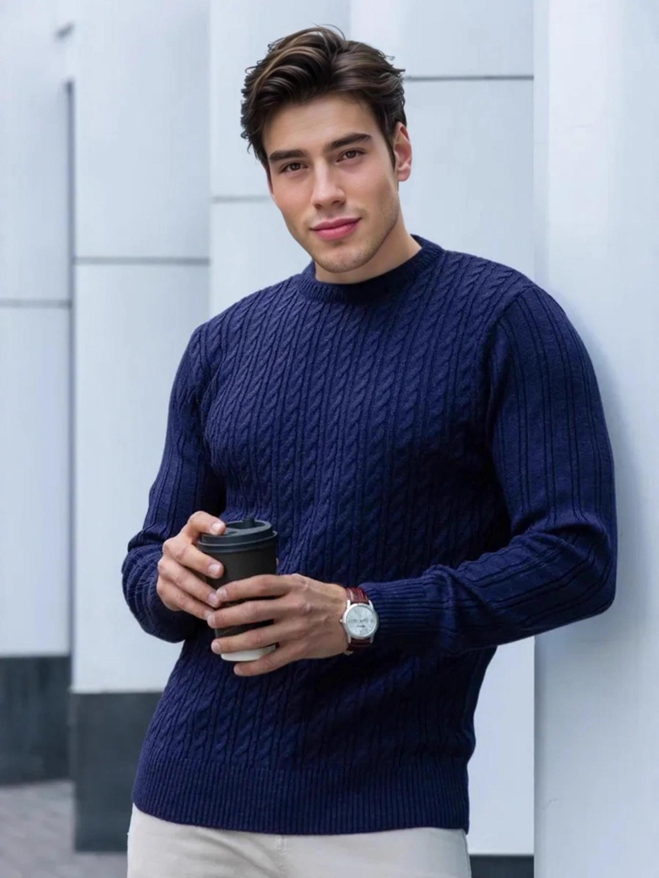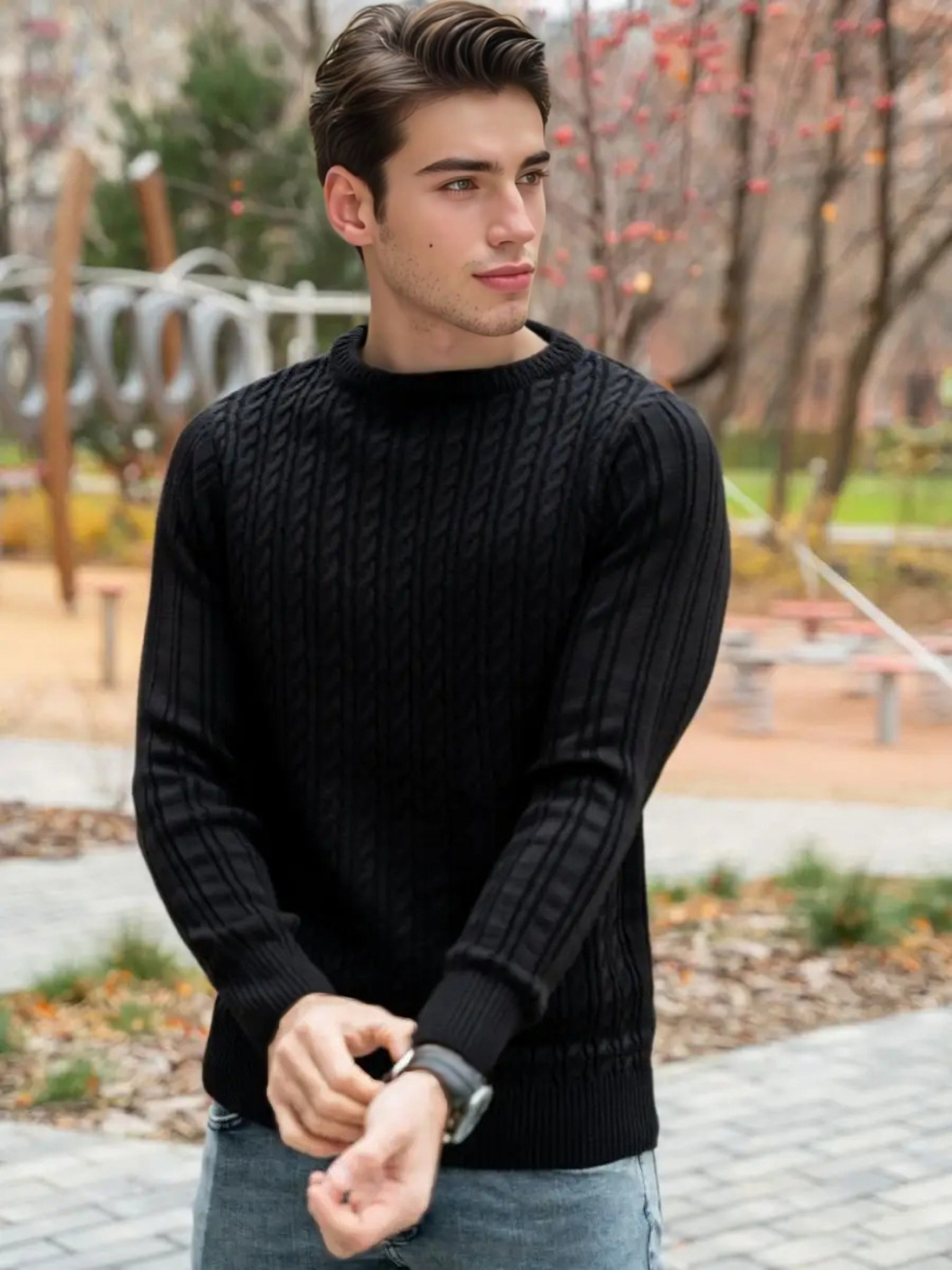 Plus Size Men's Sweater Winter Warm Cable Knit Pullover - Solid Color Round Neck Loose Fit Sweaters for Big & Tall, Casual Winter Wear, Machine Washable Cozy Sweaters for Cold Weather (European/American Styles), PLUS SIZE